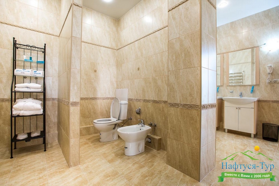с ванной/душем, тапочки, туалетные принадлежности, фен, халат