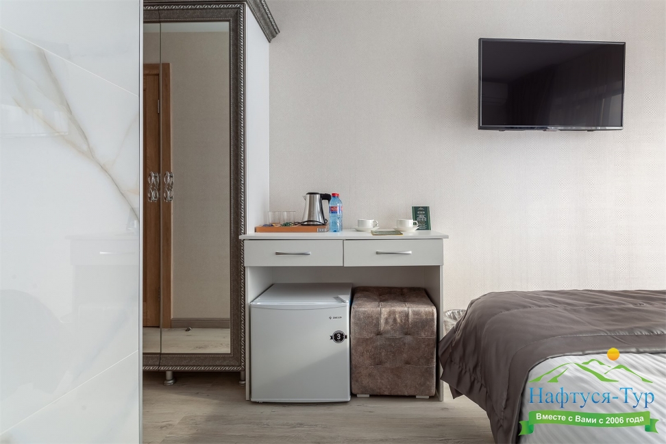 кондиционер, мини-холодильник, набор посуды, сейф, телевизор, телефон, электрочайник