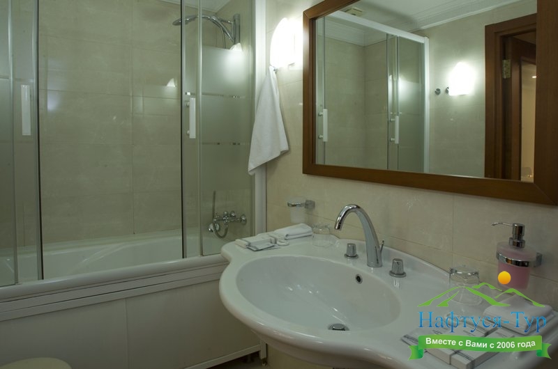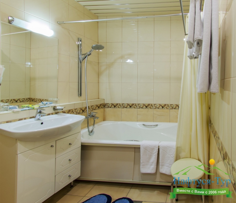 с ванной/душем, с джакузи, тапочки, туалетные принадлежности, фен, халат