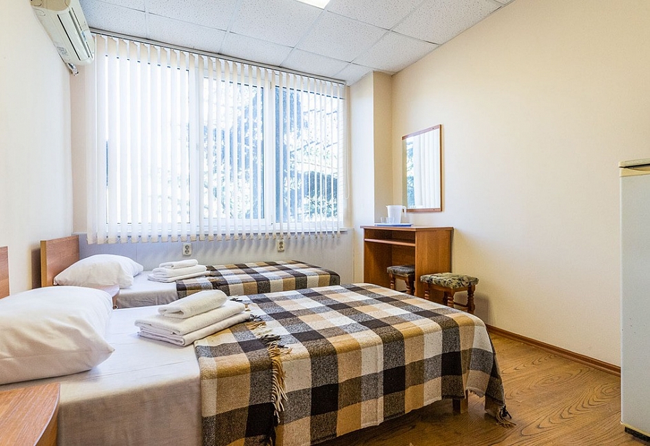 Хороший пансионат эконом-класса. Месторасположение отличное: недалеко от вокзала, пляж в шаговой доступности. Проживала в уютном и тихом номере. Кровать оказалась очень удобной, что позволяло выспатся и спина не болела.