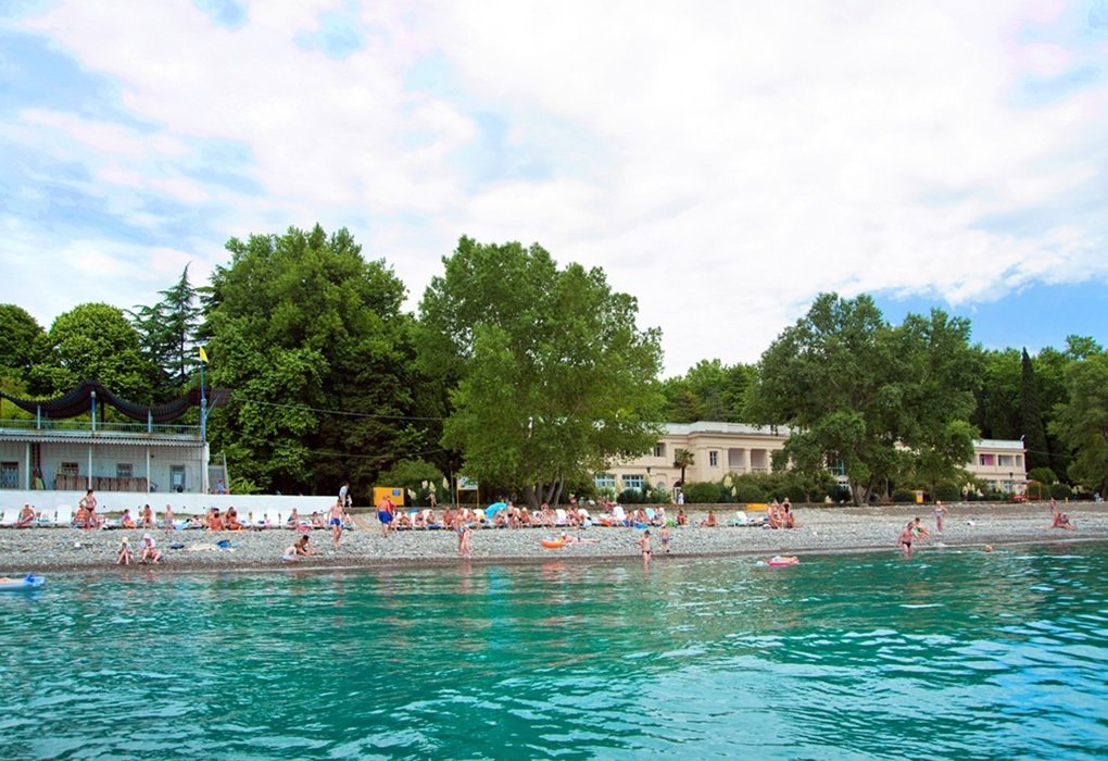 Расположение: Первая линия у моря (30 м до пляжа от корпуса 1), 63 км до центра Сочи, 88 км до аэропорта Адлер