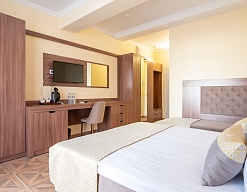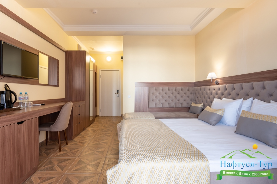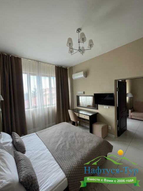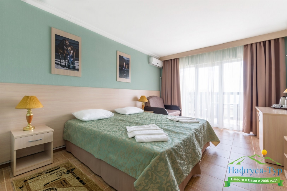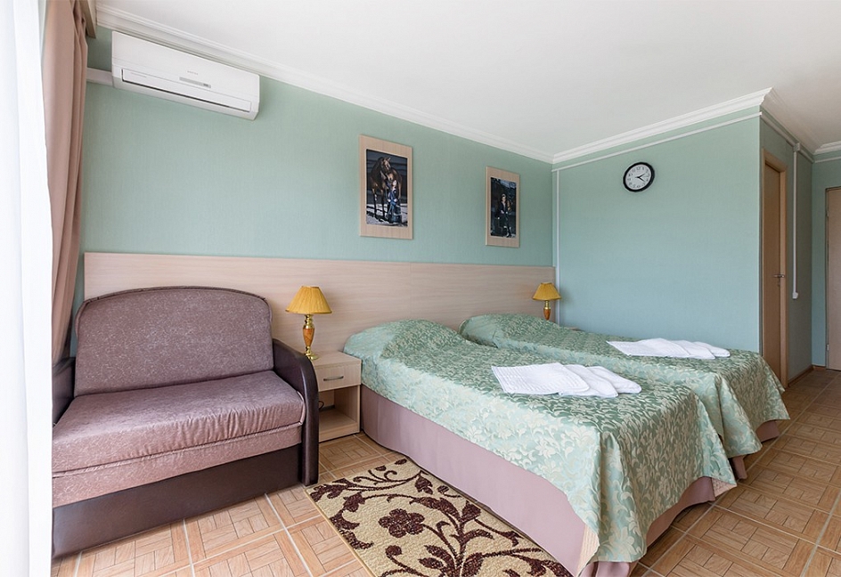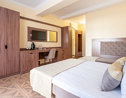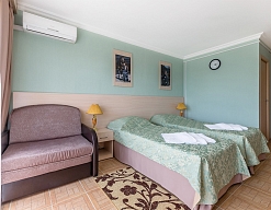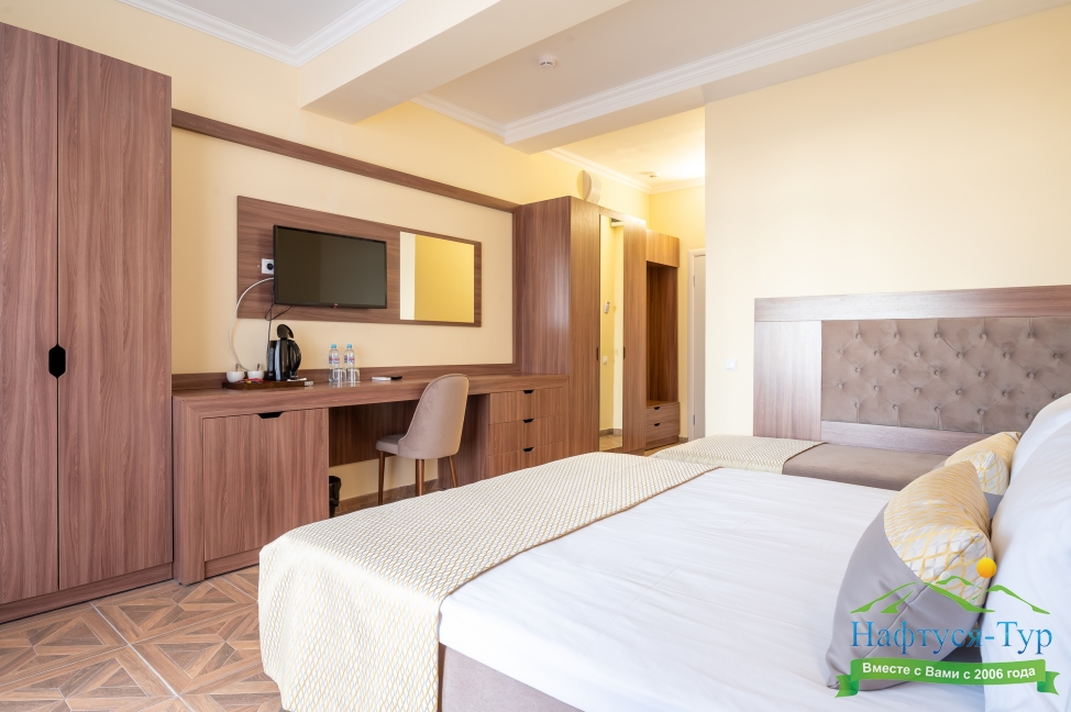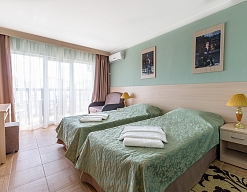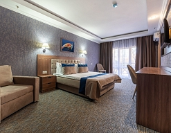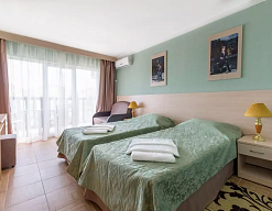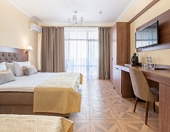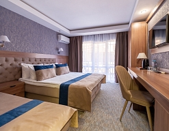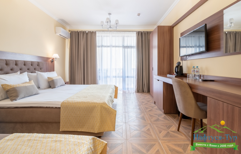 Современные и уютные номера: Номера комплекса предоставляют все необходимое для комфортного проживания, а также частичный или полный вид на море, создавая атмосферу уюта и спокойствия.