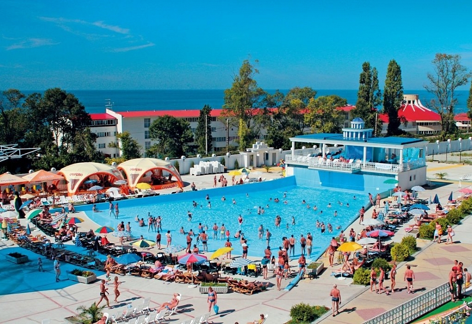 Бассейны — не редкость для пансионатов Сочи, в некоторых установлены летние развлекательные горки.