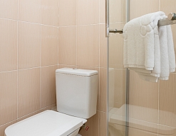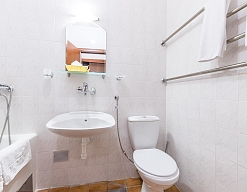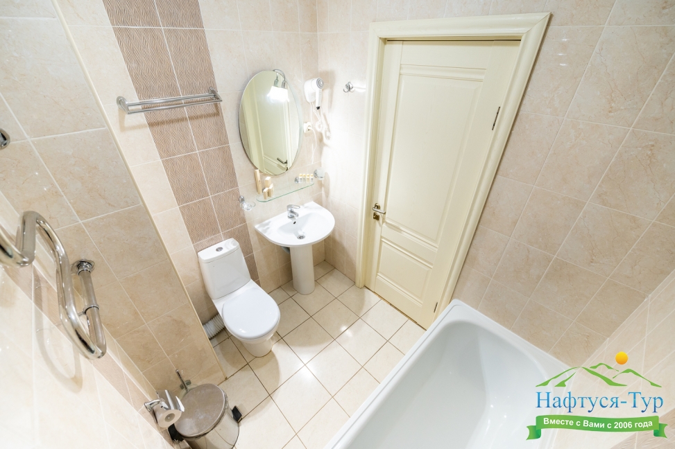 с ванной или душевой кабиной, туалетные принадлежности, фен