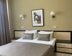 зеркало, кровати односпальные /одна двуспальная кровать, прикроватные тумбочки, стол, шкаф