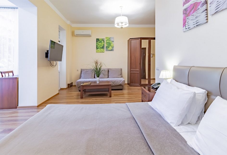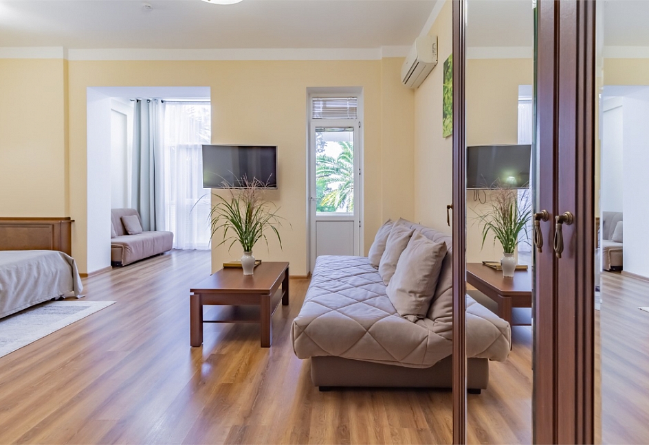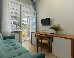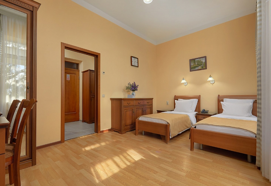 Комфортабельное проживание: Номера санатория имени Фрунзе обеспечивают уют и комфорт, создавая благоприятные условия для вашего отдыха.