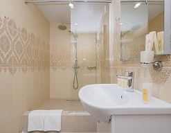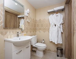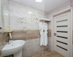 с ванной/душем, тапочки, туалетные принадлежности, фен, халат