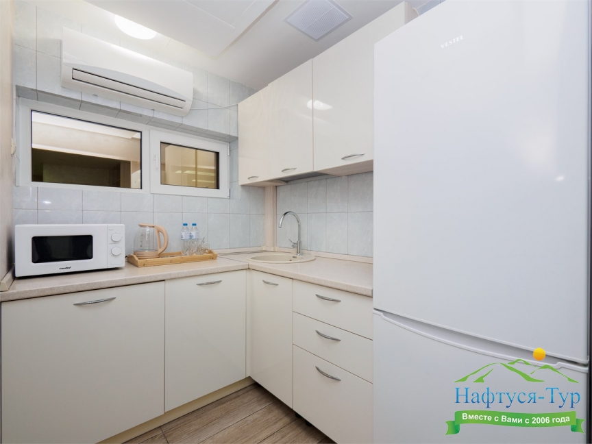 мини-холодильник, сплит-система, телевизор, чайный набор посуды, электрочайник