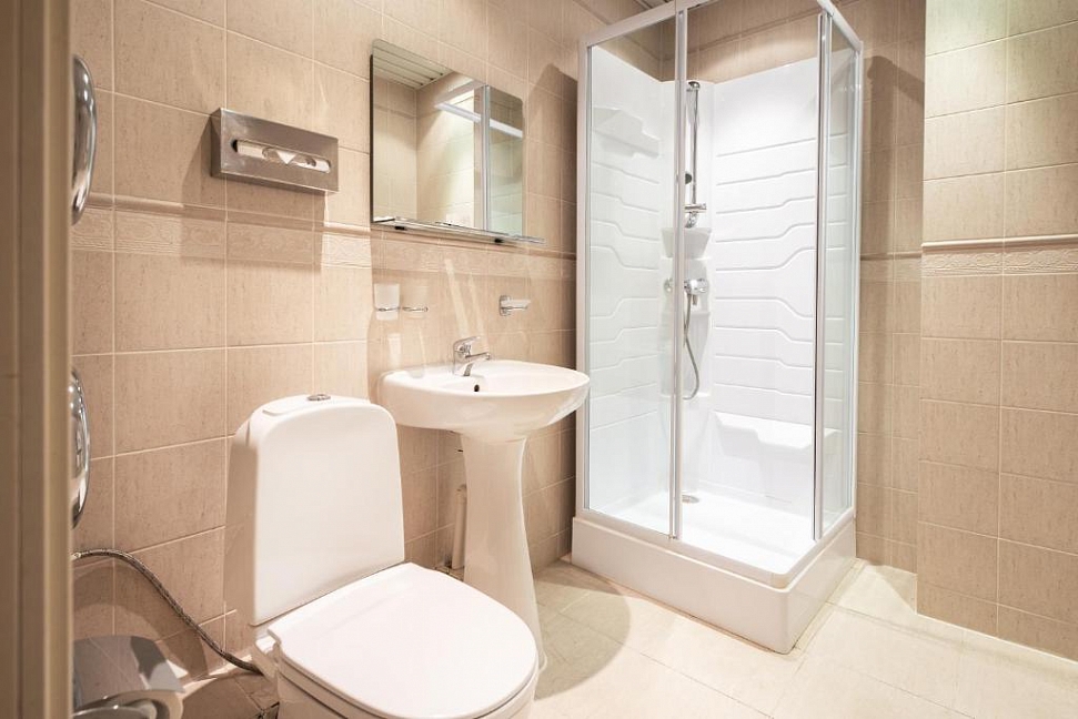 душевая кабина,набор полотенец,умывальник