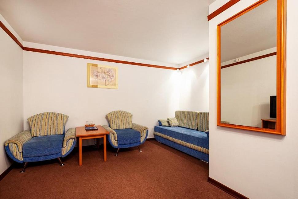 мини-бар,шкаф,телефон,журнальный стол,раскладной диван
