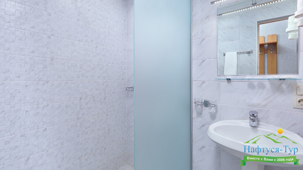 с душевой кабиной, туалетные принадлежности