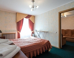 вешалка, кровати односпальные /одна двуспальная кровать, прикроватные тумбочки, столик журнальный, стулья, шкаф