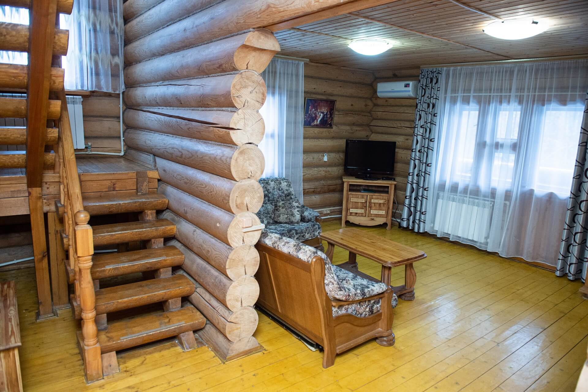 Гостям предлагается размещение в номерах вместимостью от одного до трех человек. Каждый номер оснащен кондиционером и иной современной техникой. Для взыскательных посетителей «Воскресенское» предлагает коттеджи, дополненные камином, кухней и комнатой для занятий настольным теннисом или бильярдом.