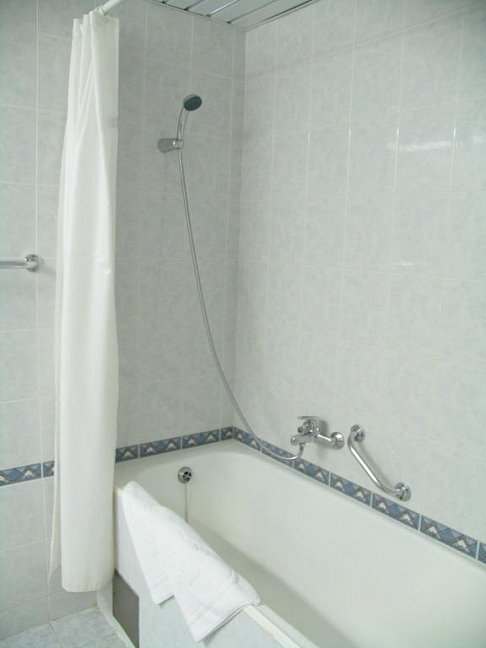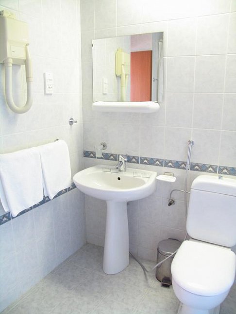 с душем или ванной, туалетные принадлежности, фен