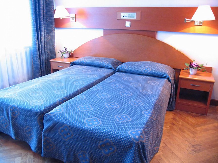 вешалка, зеркало, кровати односпальные, прикроватные тумбочки, стол, столик туалетный, стулья, шкаф