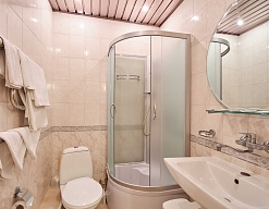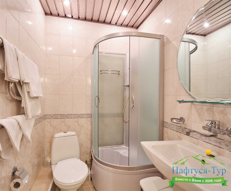 с душем или ванной, туалетные принадлежности, фен