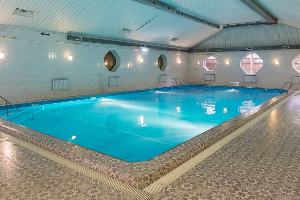 • Бассейн крытый, 18х8, вода пресная, входит в стоимость. Парная, сауна