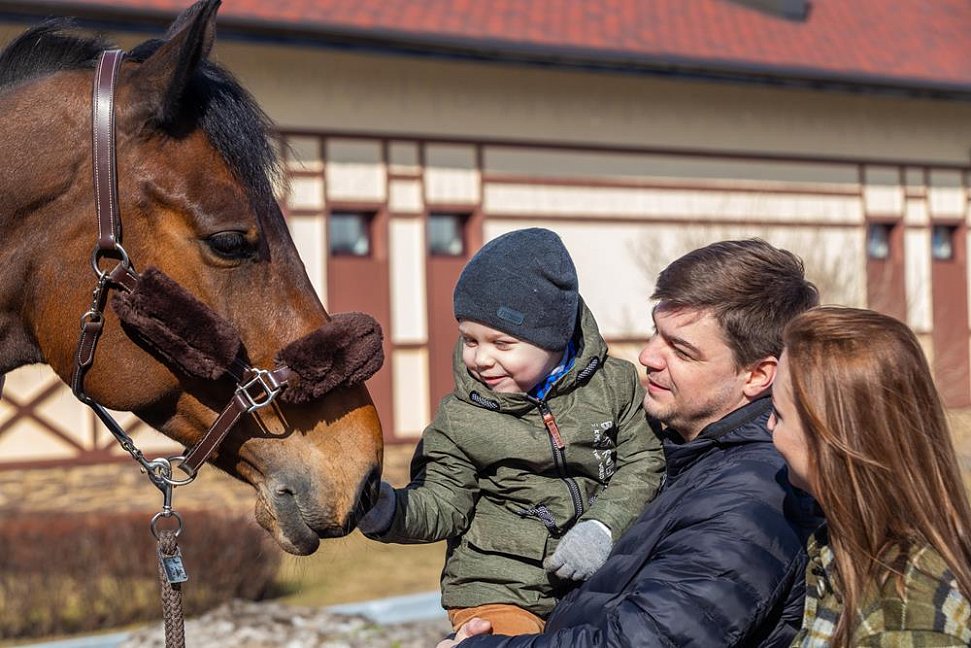 Поездом до ж/д вокзала ст. Истра, далее пройти 20 м до остановки общественного транспорта и на автобусе №32 двигаться до остановки «Станция МЦД Нахабино», далее на автобусе №173 двигаться до остановки «Покровское», далее 3 км до отеля.