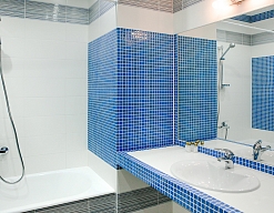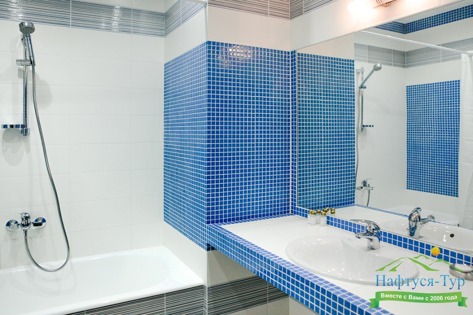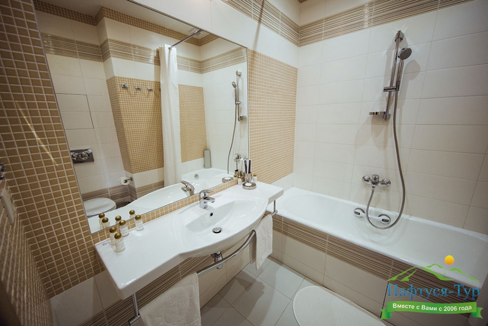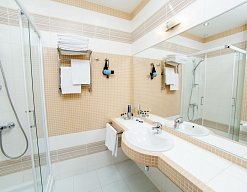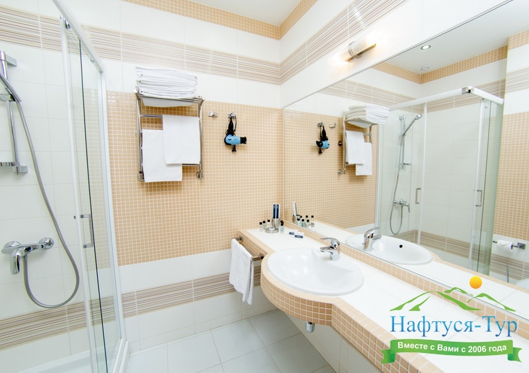 с душем или ванной, туалетные принадлежности, фен