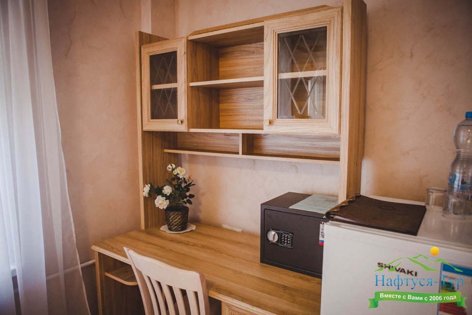 кондиционер, микроволновая печь, набор посуды, сейф, телевизор, телефон, холодильник, электрочайник