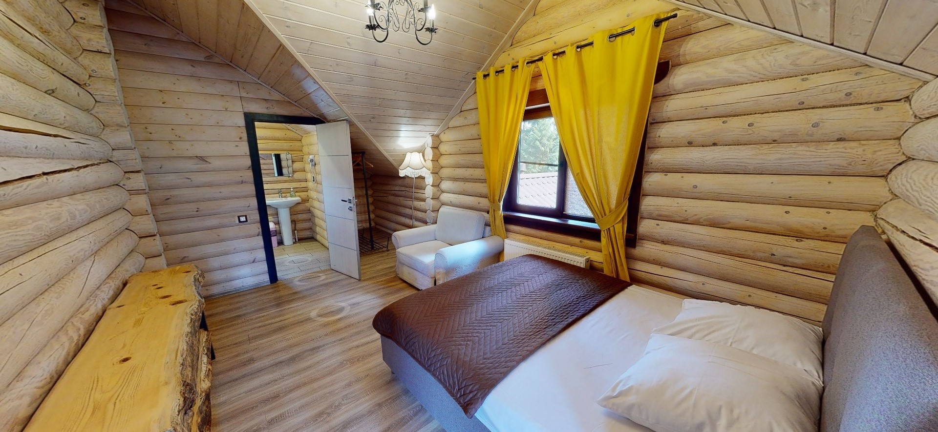 вешалка, диван, зеркало, кровать двуспальная, прикроватные тумбочки, стол, стулья, шкаф