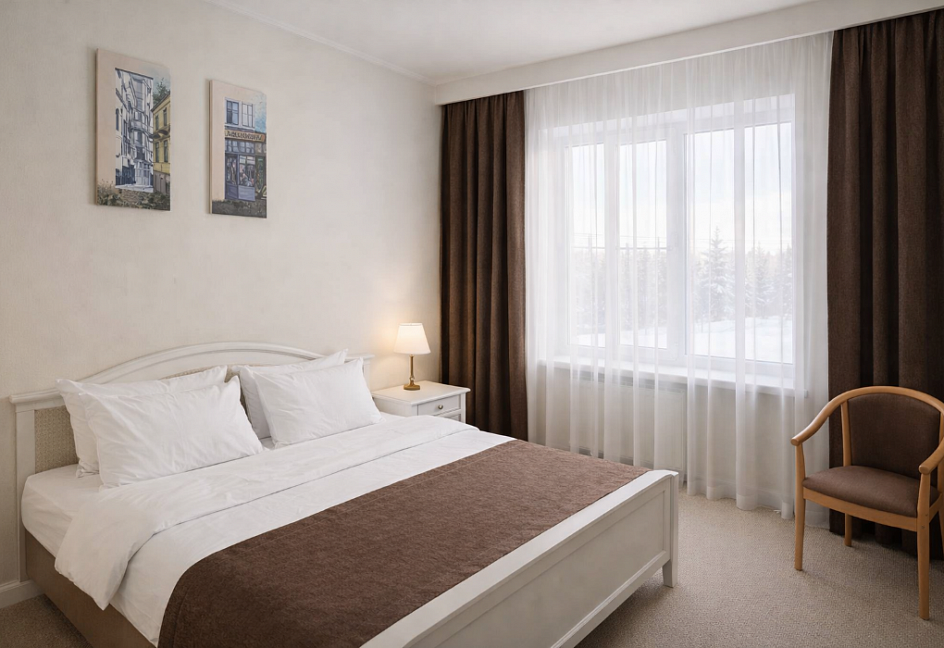 смена полотенец (1 раз в 3 дня) , смена постельного белья (1 раз в 3 дня) , уборка номера (ежедневно) , услуги телефонной связи по территории отеля