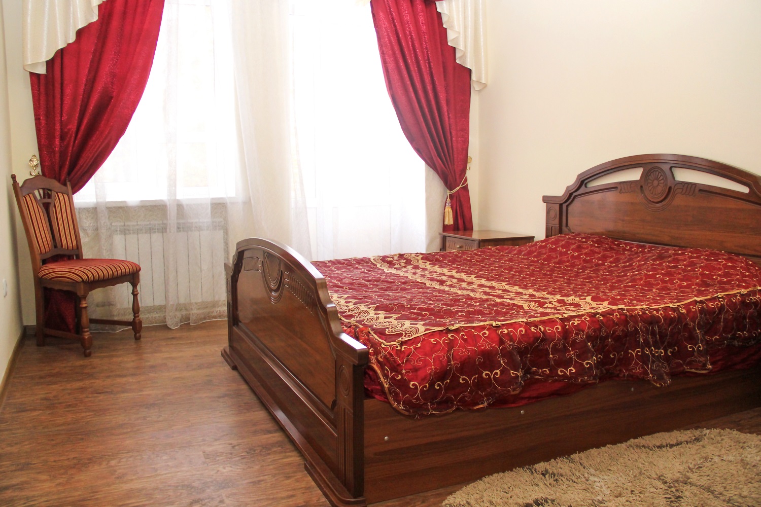 Отель занимает трехэтажное историческое здании без лифта. Жилой фонд, рассчитанный на 61 человека, предлагает однокомнатные, двухкомнатные и трехкомнатные номера разной категории от Стандартов до Люксов. В каждом номере имеется собственный душ, телевизор и холодильник и качественная резная мебель из дерева.