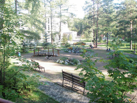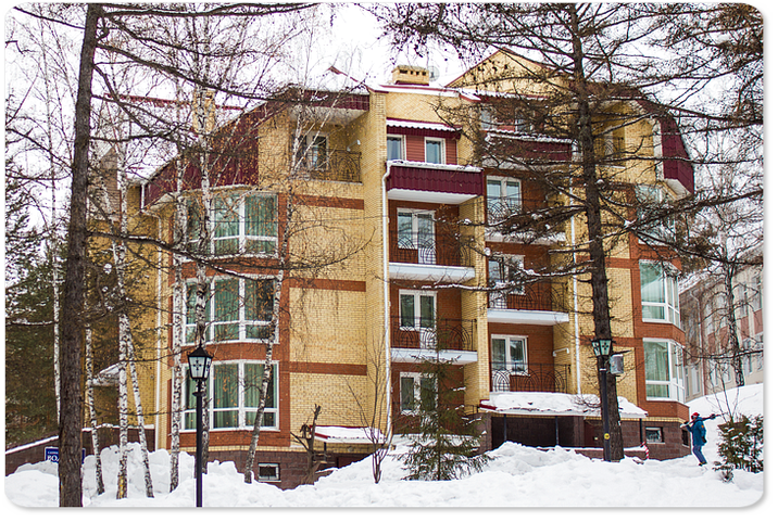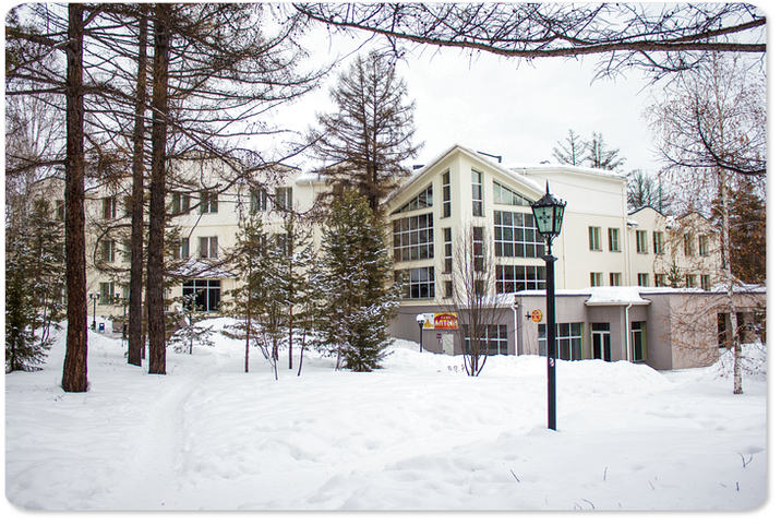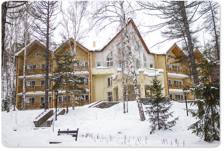 Территория дома отдыха занимает площадь 90 га, являющуюся лесопарковой. Обилие деревьев, пешеходные дорожки и зоны отдыха создают необходимый уют и комфорт. Гостиничный комплекс состоит из 8 отдельно стоящих зданий (4 корпуса и 4 коттеджа), 3-этажного спорт-отеля, расположенного на территории ГЛЦ, столовой, лечебного корпуса №2, развлекательного центра «Non Stop» и аквапарка «Аквариум». Общая вместимость жилого фонда – порядка 1000 мест. Все комнаты обеспечены необходимой мебелью, техникой и санузлами. Доступ Wi-Fi - не везде, как правило, на первых этажах основных корпусов. В номерах и коттеджах – проводной. Двухэтажный корпус 1 стоит недалеко от въезда за линией коттеджей, в стороне от остальных 3 корпусов. Он максимально близко находится к РК «Non Stop» и столовой. Три других корпуса расположены в глубине. 3-этажный корпус 3 и 5-этажный корпус 4 стоят рядом с аквапарком, а 3-этажный корпус 5 – напротив. Балконами оснащены только корпуса 4,5. Корпус 4 традиционно считается эконом-класса. Кирпичные 3-, 4-этажные коттеджи раскинулись вдоль центральной аллеи. В них расположены номера повышенной комфортности. Стоящие рядом коттеджи 1,2 одинаковые, сдаются полностью домами и идеально подойдут для больших компаний. Удобством местоположения отличается спорт-отель. В 100 м от него - бугельный подъемник и вся инфраструктура ГЛЦ.
