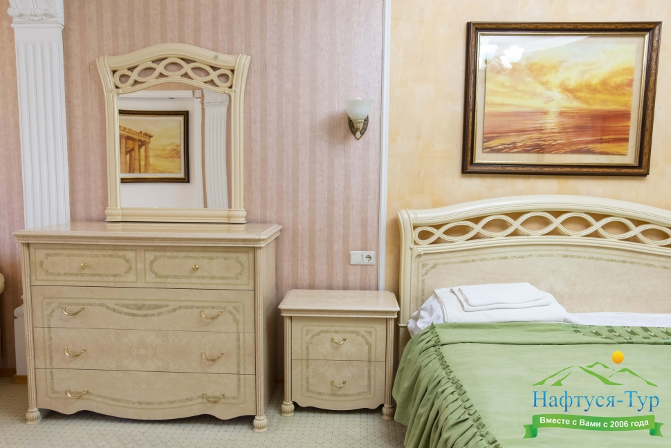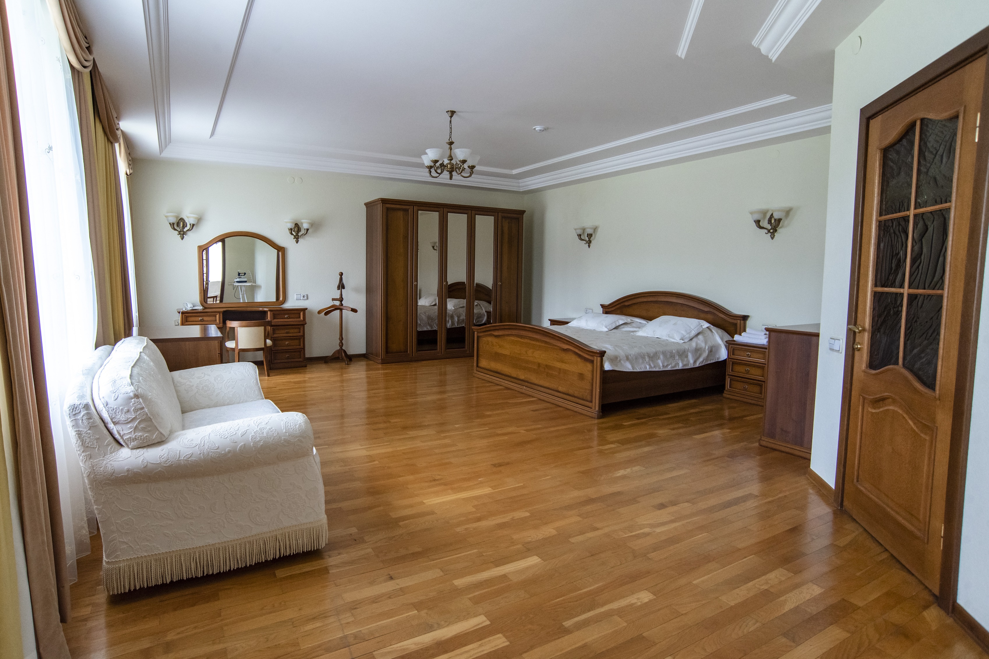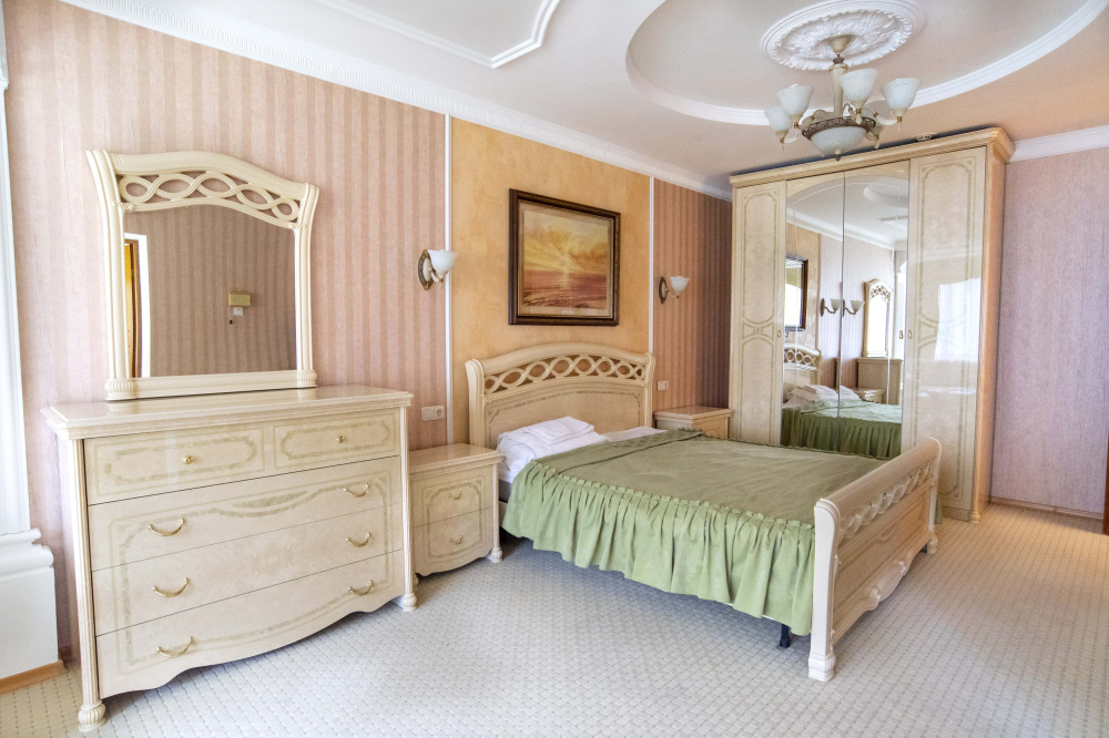 диван раскладной, кресла, кровать двуспальная, прикроватные тумбочки, стол, столик журнальный, столик туалетный, стулья, шкаф