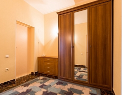 вешалка, зеркало, кровати односпальные /одна двуспальная кровать, прикроватные тумбочки, стол, стулья, шкаф