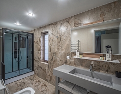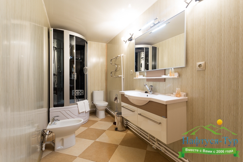 2 санузла, с душевой кабиной, тапочки, туалетные принадлежности, фен, халат