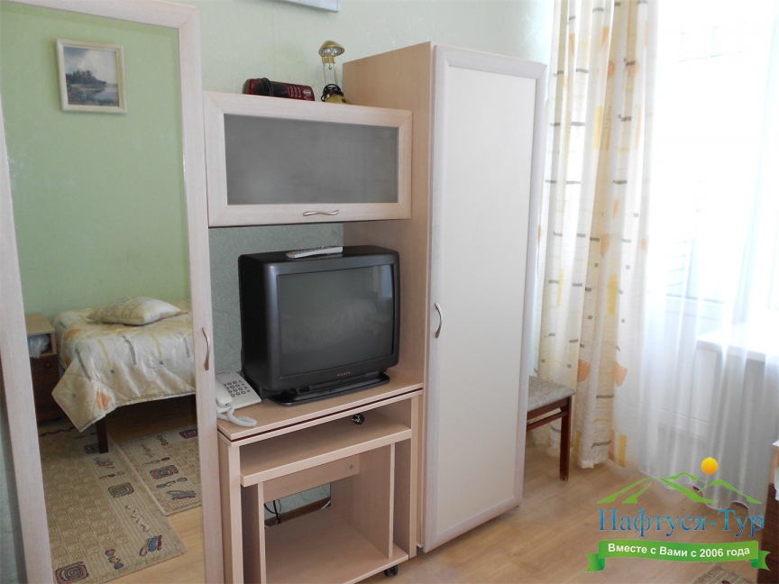 мини-холодильник, телевизор, телефон, чайный набор посуды