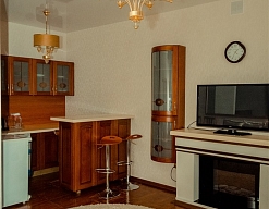 камин, кондиционер, микроволновая печь, набор посуды, сейф, телевизор, телефон, холодильник, электрочайник