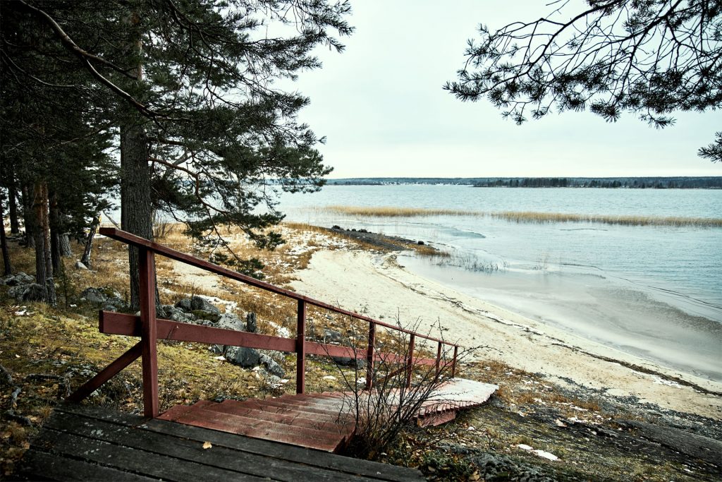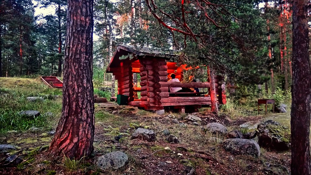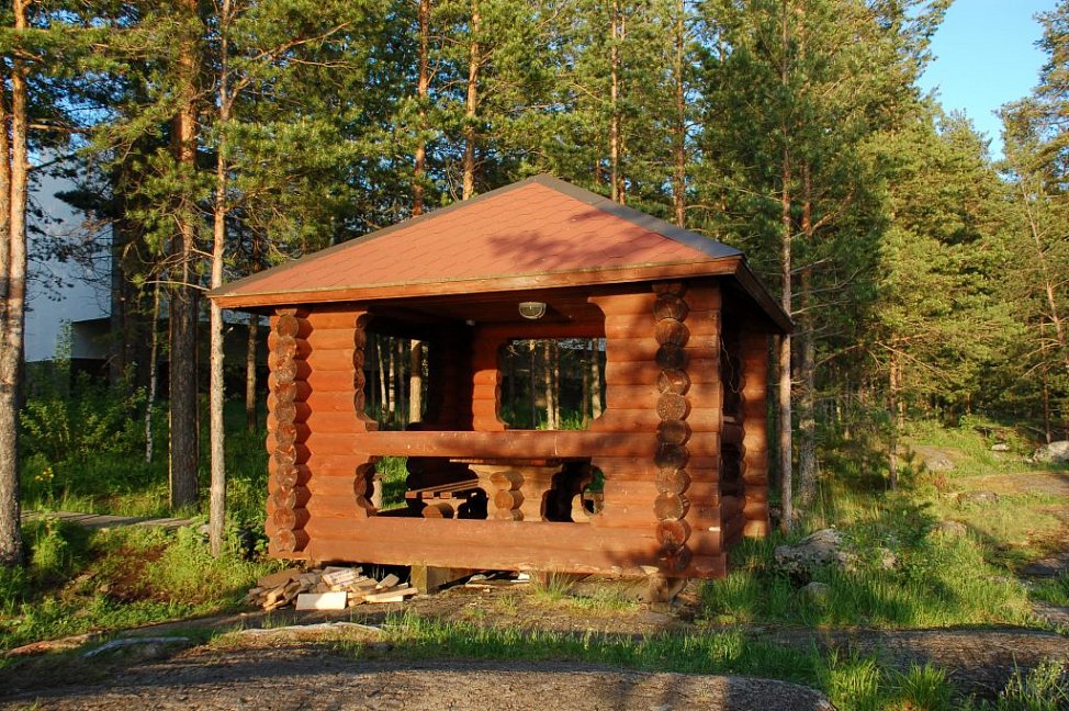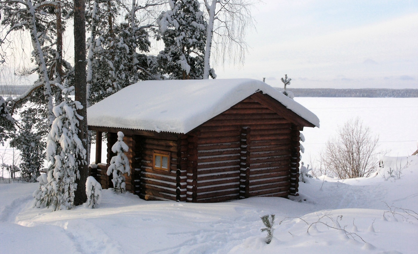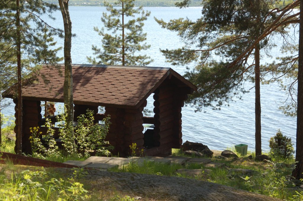 - на берегу озера расположены две русские дровяные бани