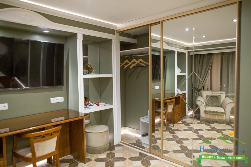 кондиционер, сейф, телевизор ЖК, телефон, чайная станция, чайный набор посуды