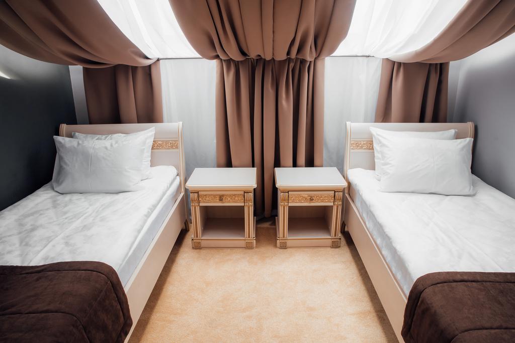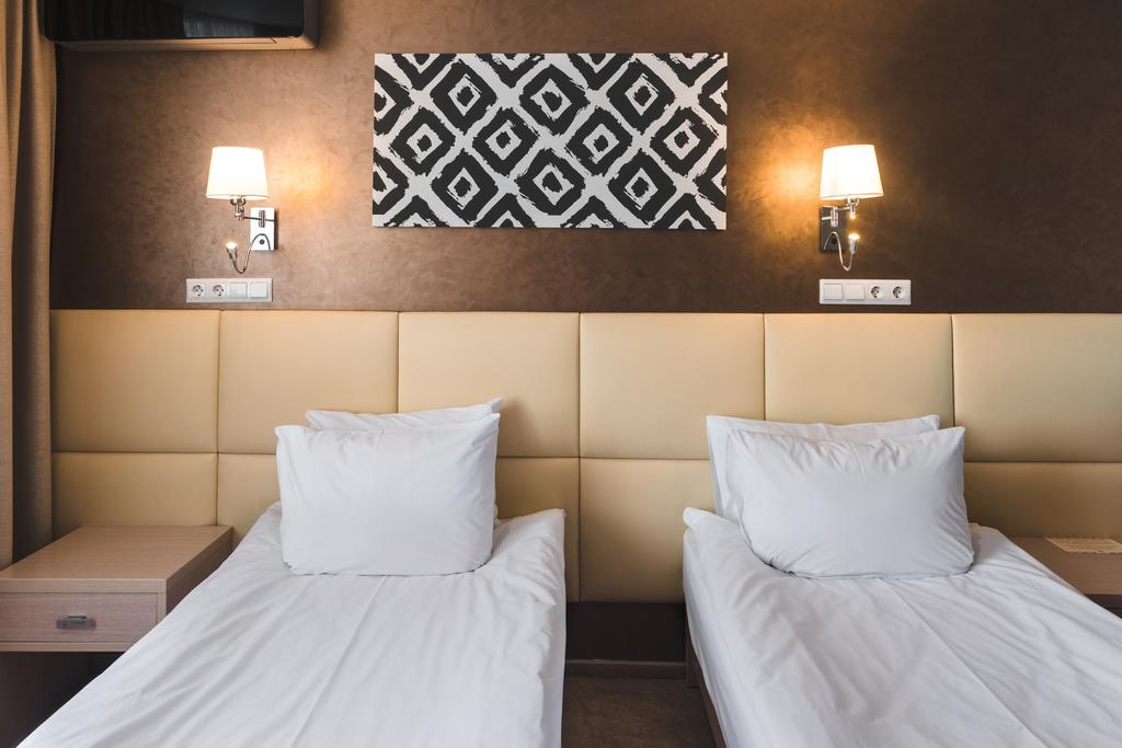 кровати односпальные, прикроватные тумбочки, стол, стул, шкаф