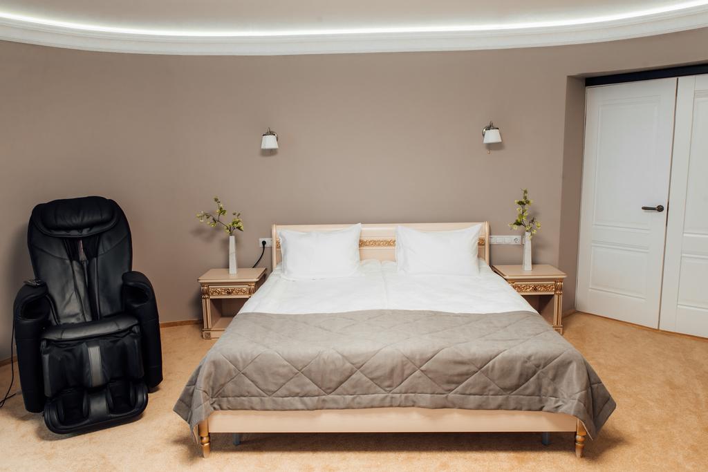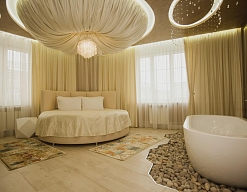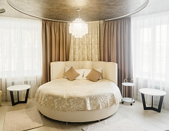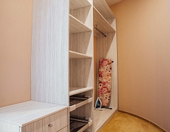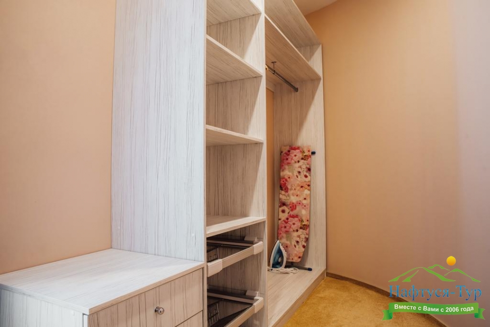 гардеробная, кровать двуспальная, прикроватные тумбочки, стол, стул