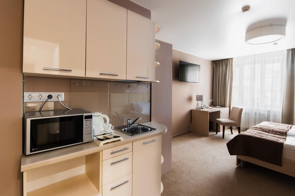 кондиционер, микроволновая печь, мини-холодильник, телевизор ЖК, телефон, чайная станция, электрочайник