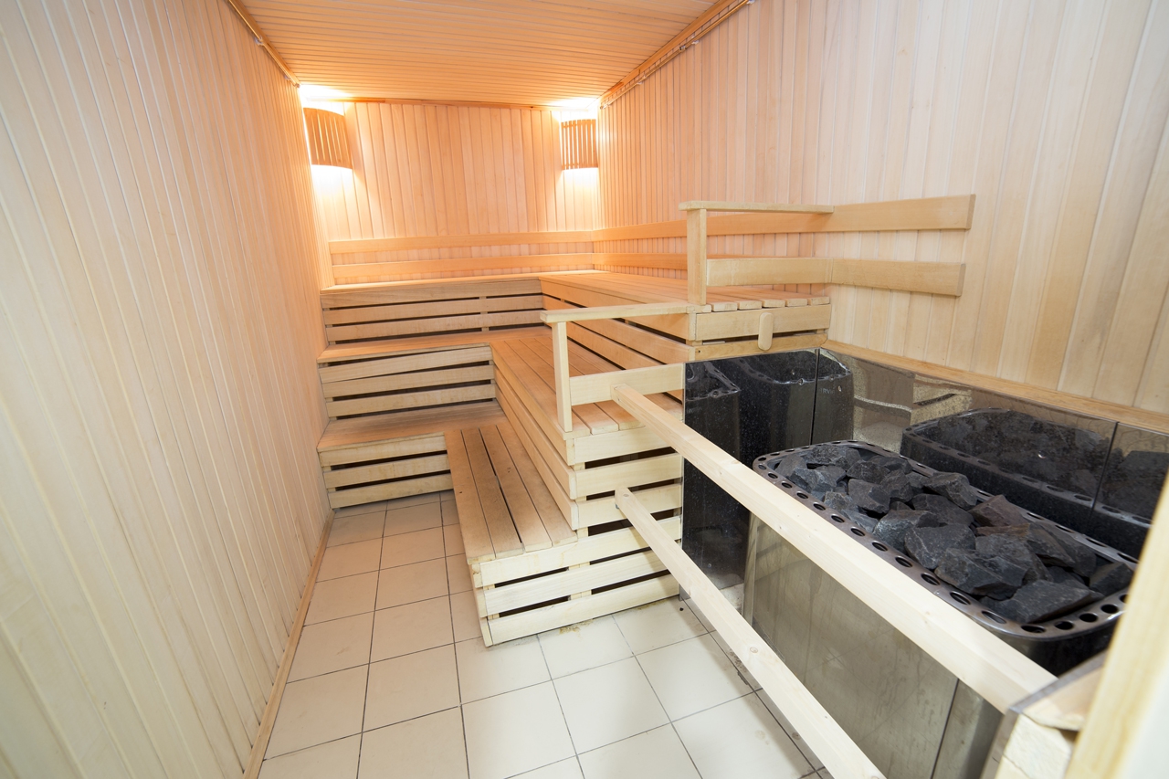 сауна, с душевой кабиной, тапочки, туалетные принадлежности, фен, халат