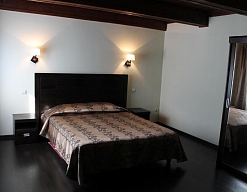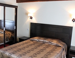 вешалка, диван, зеркало, кресло, кровати односпальные /одна двуспальная кровать, прикроватные тумбочки, стол, стулья, шкаф