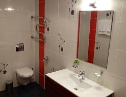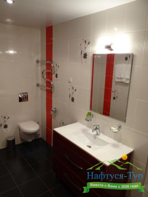 биде, с ванной, тапочки, туалетные принадлежности, фен, халат