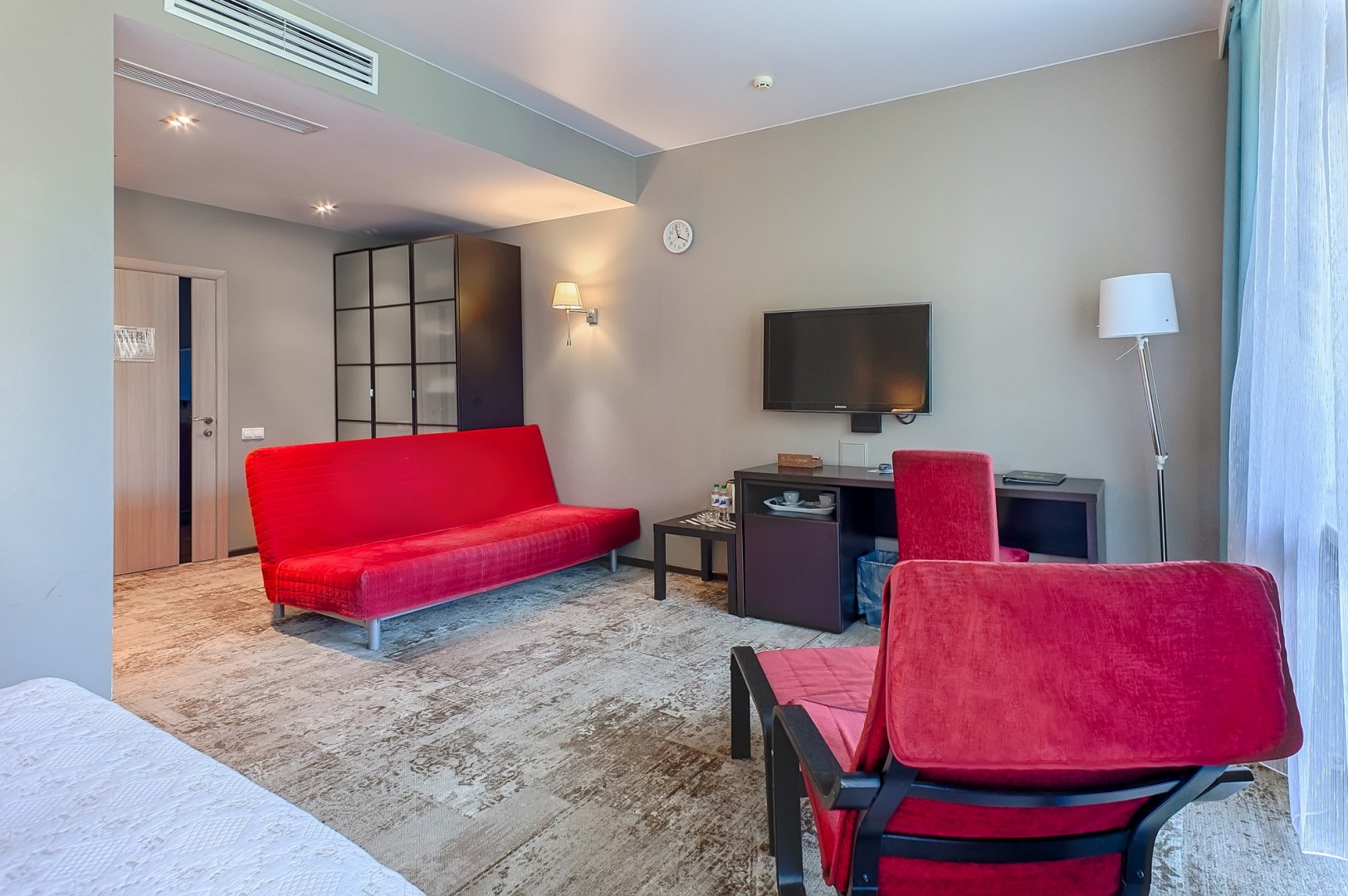 кондиционер, мини-холодильник, сейф, телевизор ЖК, телефон, чайный набор посуды, электрочайник