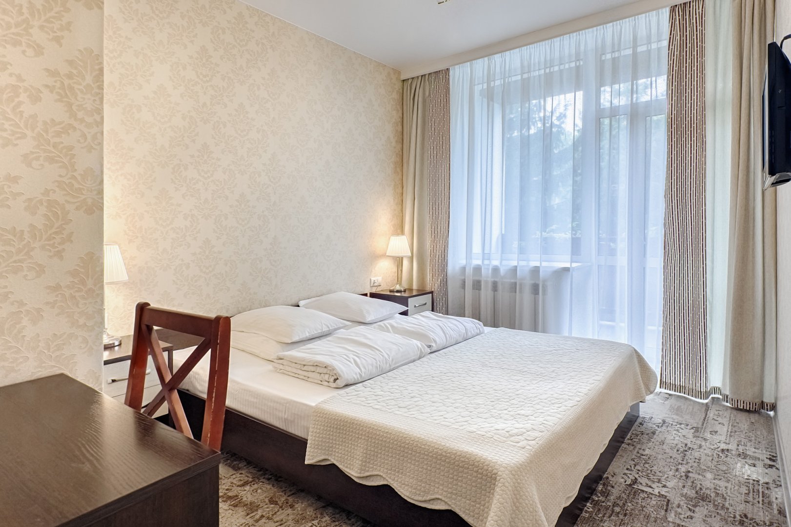 Wi-Fi бесплатно , мини-бар (платно) , смена полотенец , смена постельного белья , уборка номера