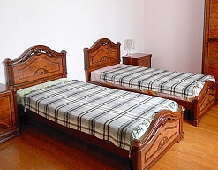 вешалка, кровати односпальные, прикроватные тумбочки, стол, стулья, шкаф