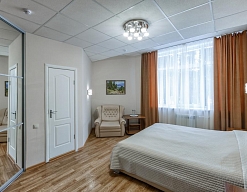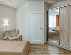 гардеробная, комод, кресло-кровать, кровати односпальные /одна двуспальная кровать, прикроватные тумбочки, стол, стулья