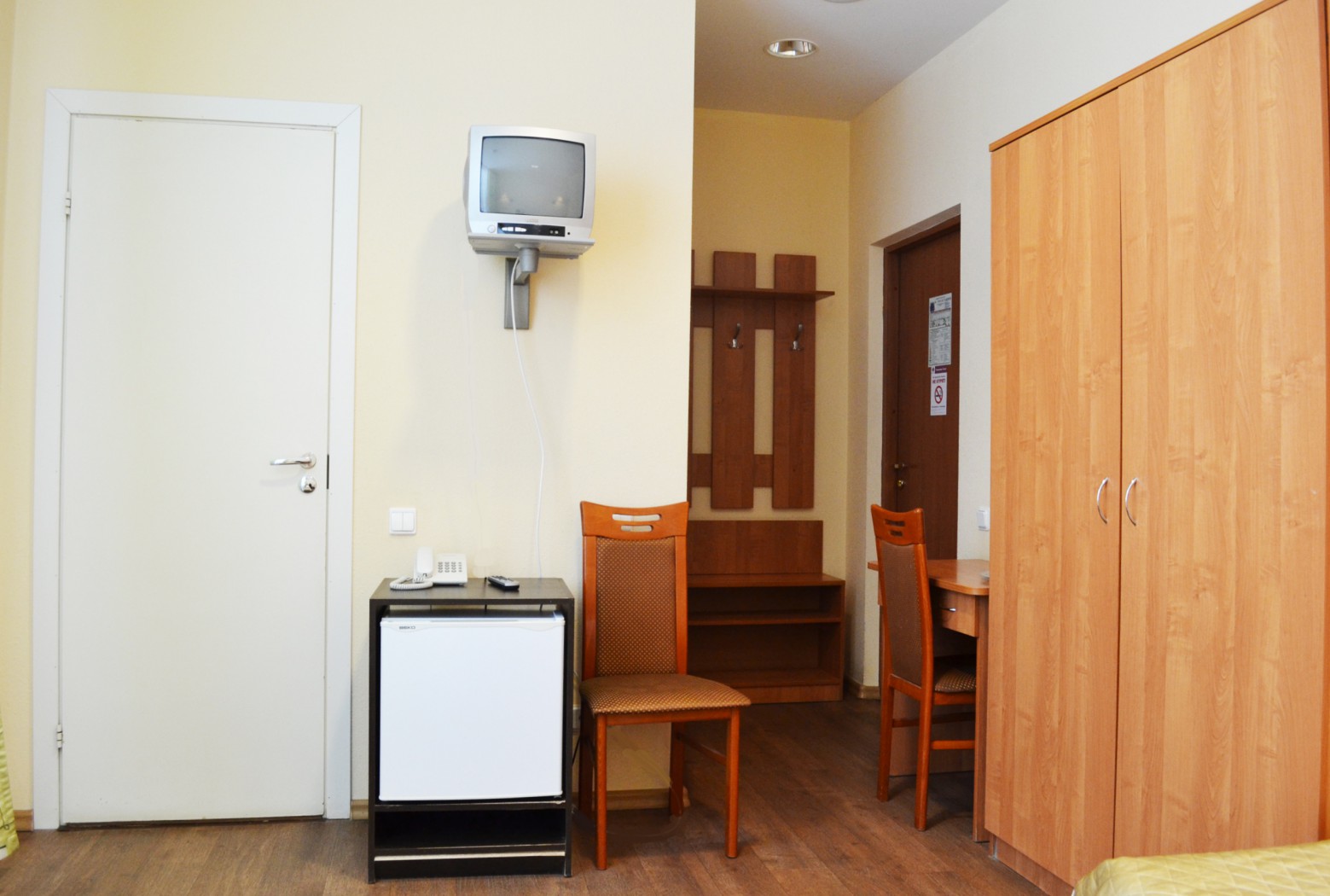 кровать односпальная, прикроватные тумбочки, стол, стулья, шкаф