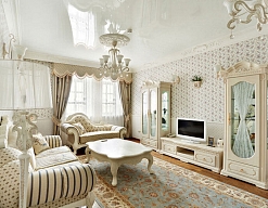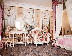 диван раскладной, зеркало, кресло, кровать двуспальная, прикроватные тумбочки, столик журнальный, столик туалетный, стулья