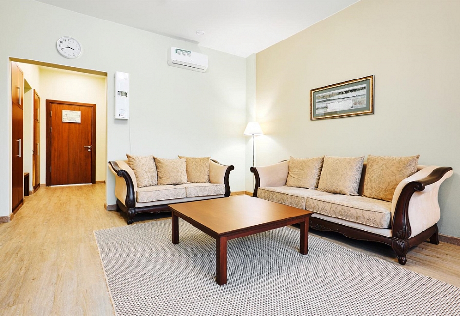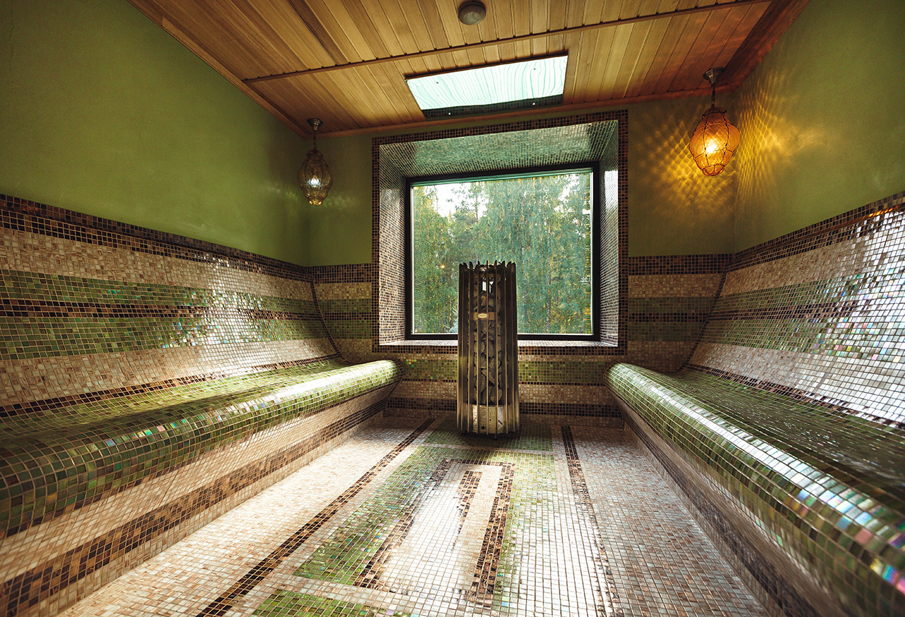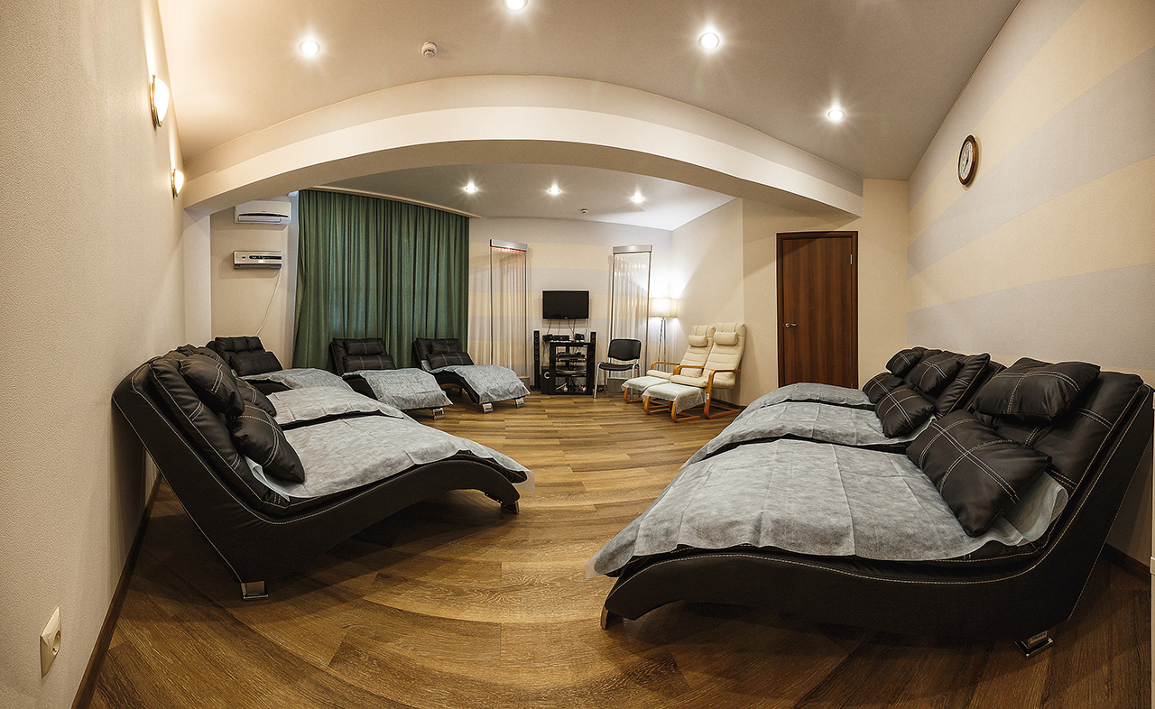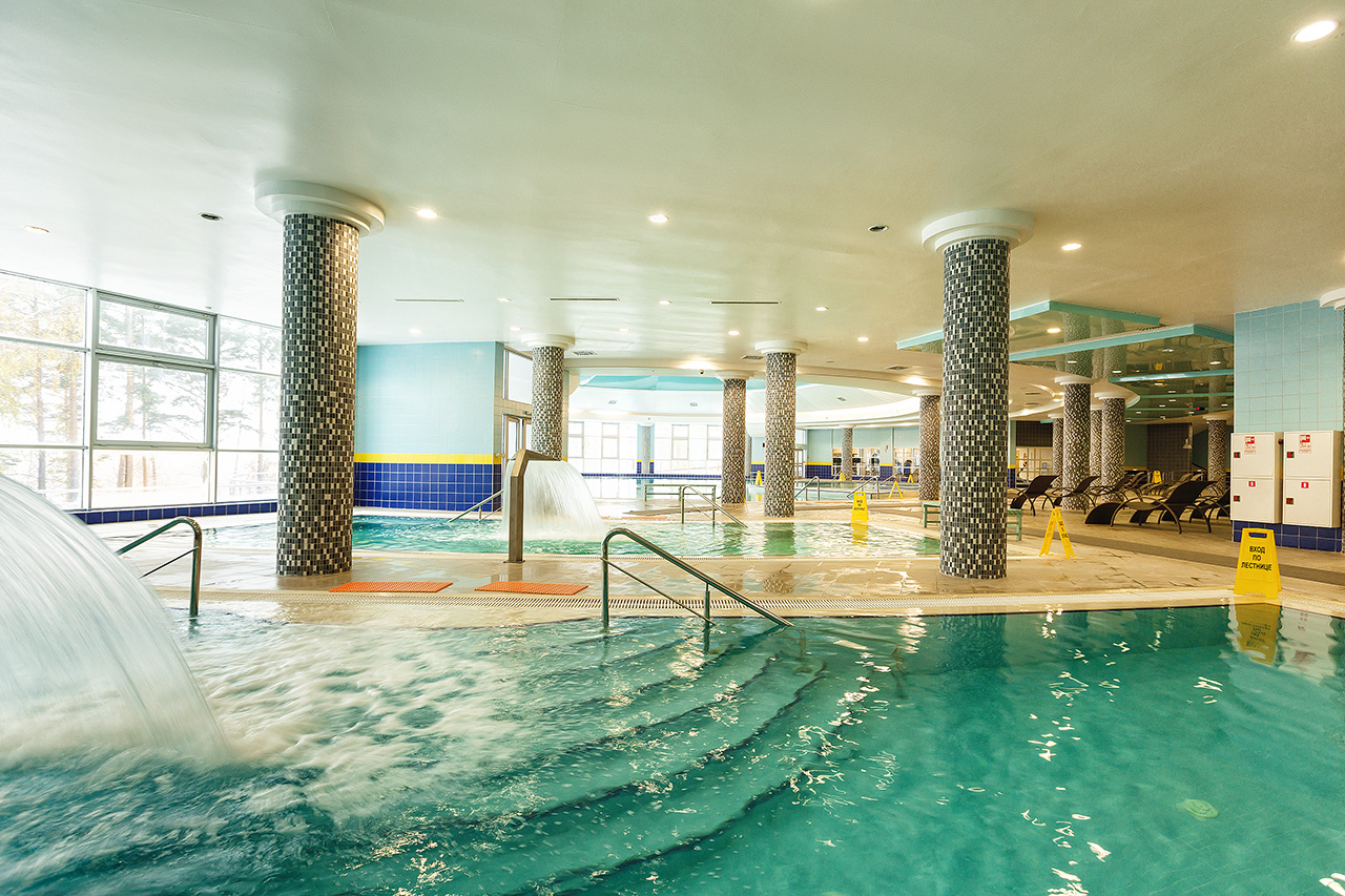 - в комплексе терморелакса - лечебный бассейн (12х25 м), традиционная финская сауна, аромо-сауна, комната отдыха, чайная комната, душевые и русский душ.