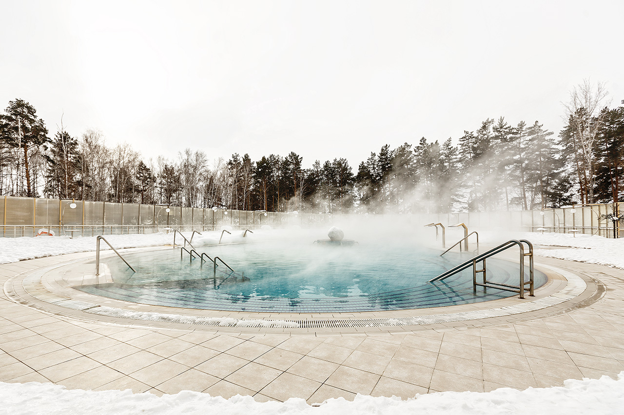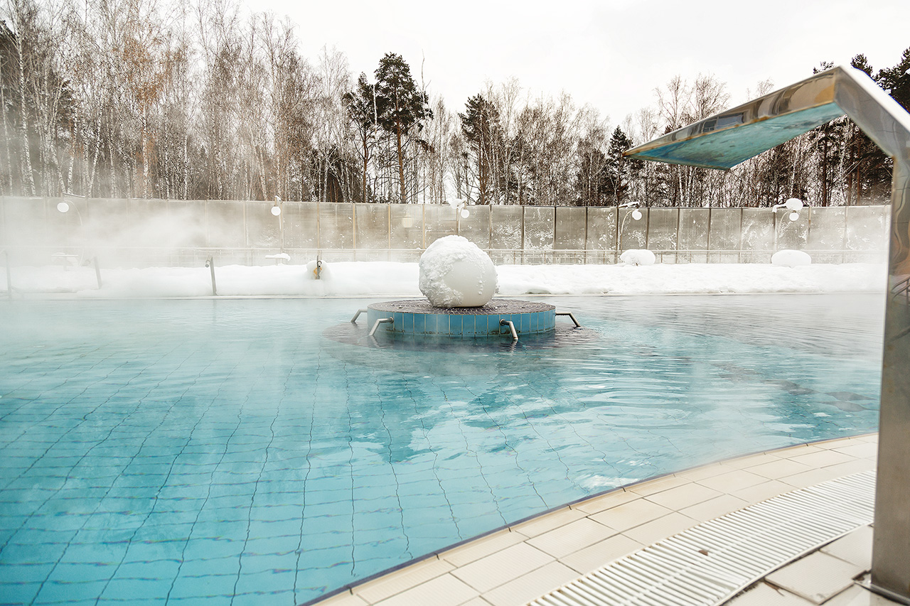 - на центральной площадке перед СПА-центром круглогодично работает открытый термальный бассейн с минеральной водой. Вокруг бассейна зона отдыха с шезлонгами.