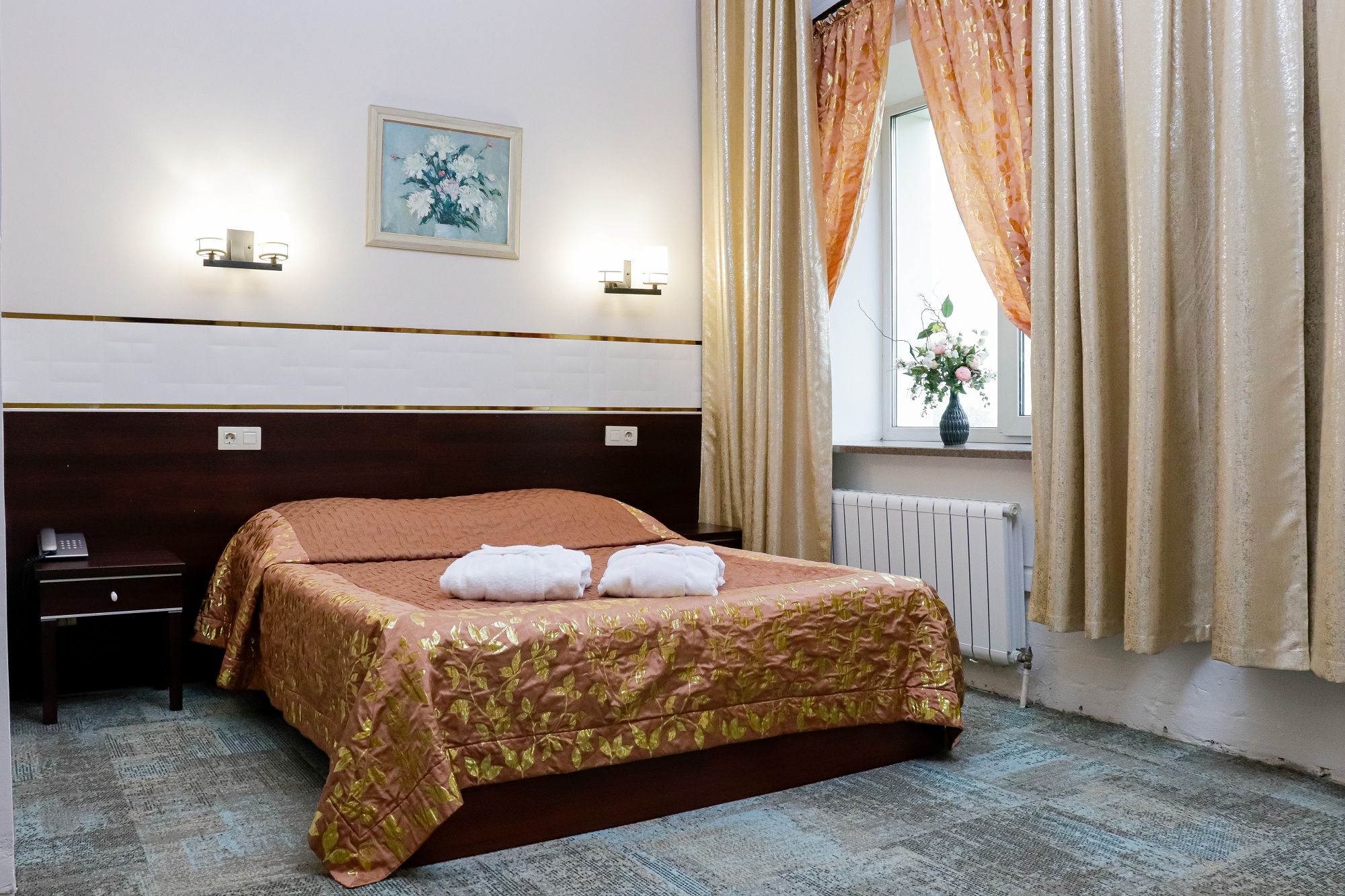 Отель разместился в современном трехэтажном здании, оснащенном лифтом. Жилой фонд включает 72 комфортабельных номера категории Стандарт, Люкс и Джуниор. Все номера выдержаны в приятых пастельных и золотисто-охристых оттенках. Комнаты оснащены санузлом с душем или ванной, хорошо меблированы, везде есть телевизор, фен, кондиционер.
